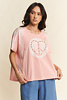 Heart peace patch lace pearl short sleeve top