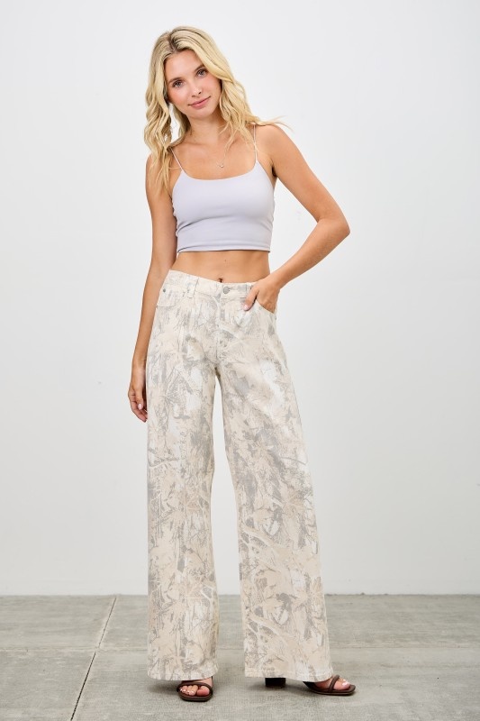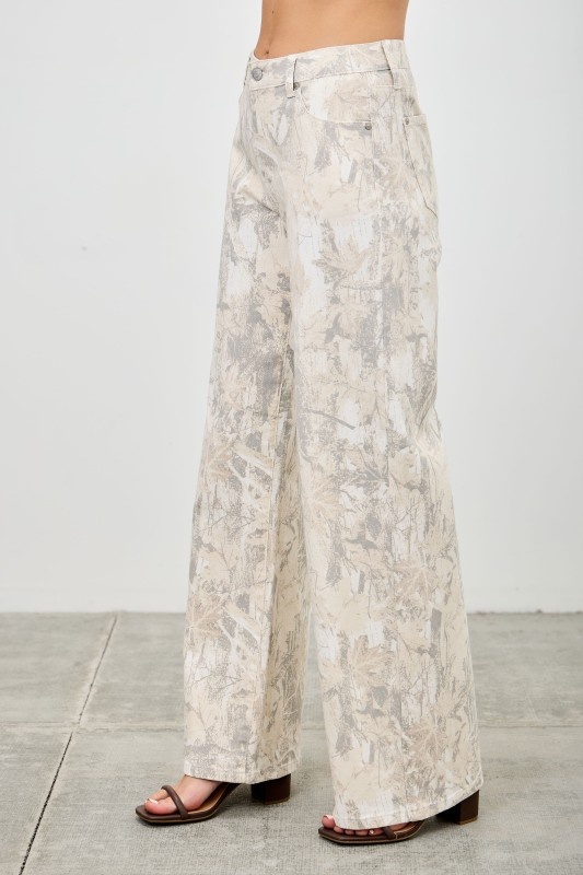 Mid Rise Printed Wide Straight Leg Jeans