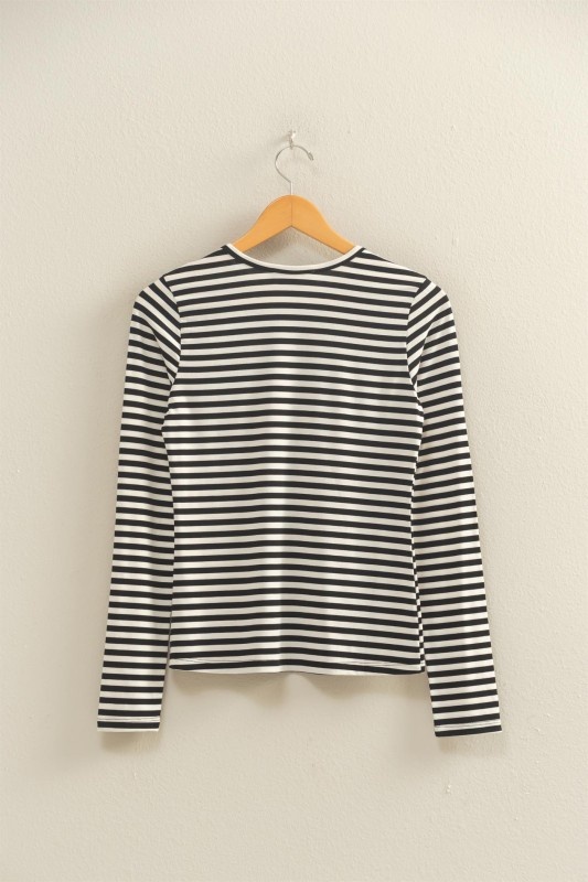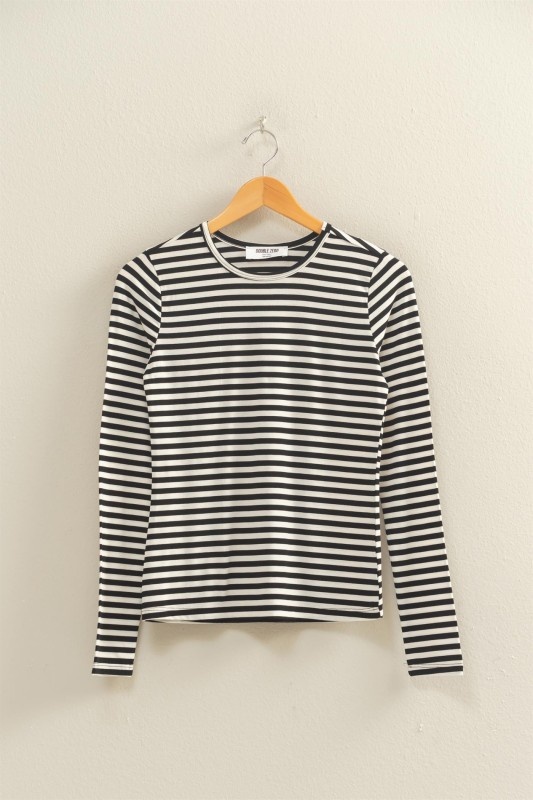 Striped Crew Neck Fitted Long Sleeve Top