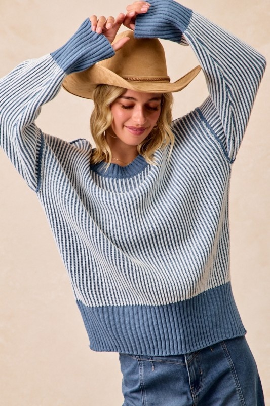 Two Tone Rib Knit Relaxed Fit Sweater Top